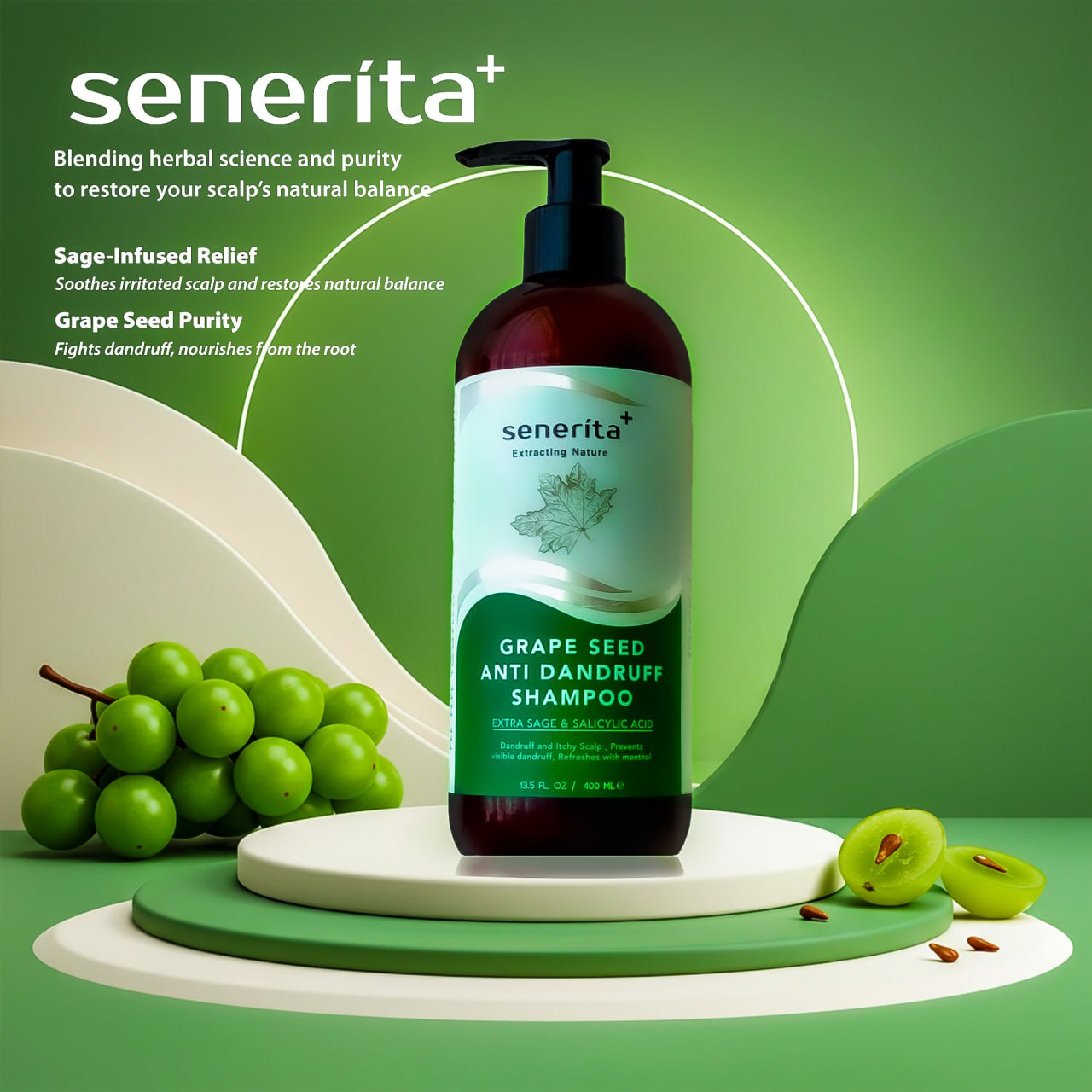 Shampoo contening grape seed and sage supports the formation of healthy hair and scalp by preventing dandruff, crusting and ciliness accumulated on the scalp with regular une. It cleans your scalp naturally, helps balance sebum and pt in your hair and scalp, and gives natural shine to the hair.It thorough ly cleans and purifies the hair and scalp Salicylic Acid content, known as BHA, controls residue and oillness on your scalp, it has vegan content. No animal ingredients have been ted Application Shape: The shampoo, which is applied to the hair that is wetted with warm water, is taken into the palm of the hand, as processed into the scalp with the help of the hands, and then the har roots are massaged and rinsed. Warnings:Only for external suna Avoid contact with eyes. Otherwise, rinse with water. Keep them where chadren can not mach